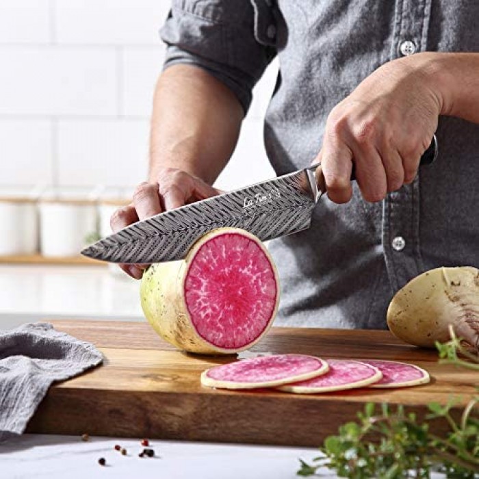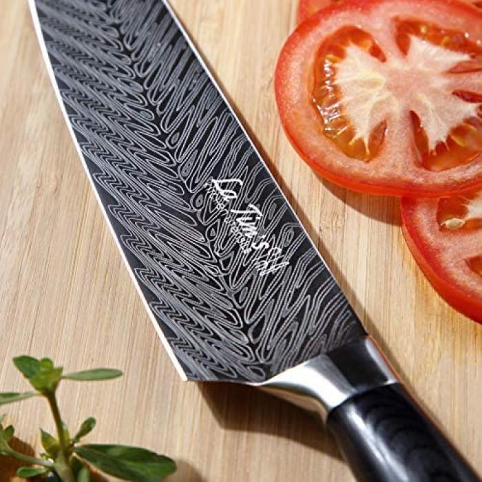 - ??Comfort Ergonomic Handle?This chef's knife has a comfortable ergonomic design. When you hold the handle of this chef's knife, you will feel the comfort and balance. You can easily use this knife no matter how big or small your hands are. Reduces much of the pressure on the wrist, perfect for frequent cooking.