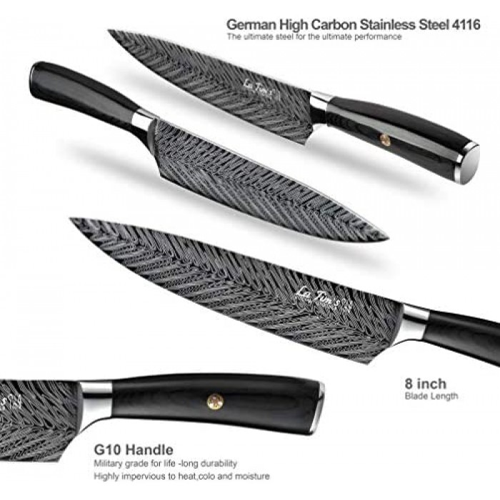 LaTim's Chef Knife 8 Inch Professional,Japanese Kitchen Cooking Knives with German High Carbon Stainless Steel 4116 and Ergonomic Handle,Finger Guard and Sharp Knife for Gift Box